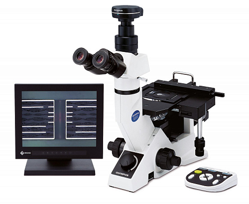 Инвертированный микроскоп GX41 представляет продукцию производства «Olympus». Установка может быть использована как в лабораторных условиях, так и в условиях работы непосредственно на объекте. Для удобства транспортировки предусмотрена специальная ручка и компактность прибора.